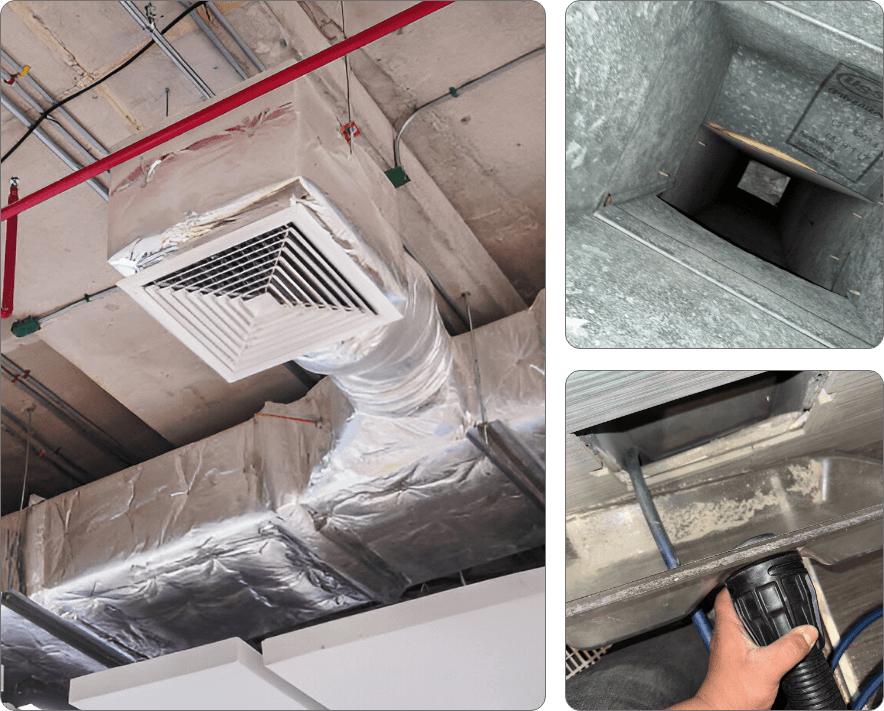We clean the entire duct system, including supply and return ducts, main trunk lines, and accessible HVAC components, not just the vent covers.